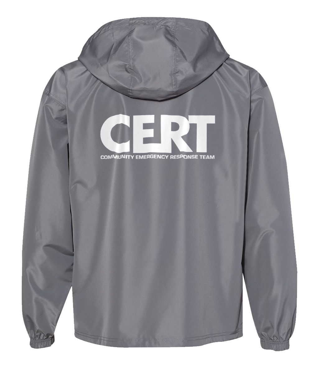 While the grey in not a traditional CERT color, I love how the white logo and lettering really stand out on this jacket. The packable feature is very useful. I'll be adding this into the mobile kit that I leave in my truck to keep rain protection handy while I'm out on deployments. (You'll never regret having an extra rain cover on hand)